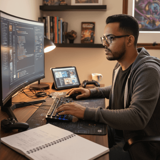 Se você sente que quer criar jogos, mas ainda não sabe por onde começar, talvez o que esteja faltando não seja talento, seja direção e a partir de agora, quero te mostrar o método que me ajudou a sair do zero.